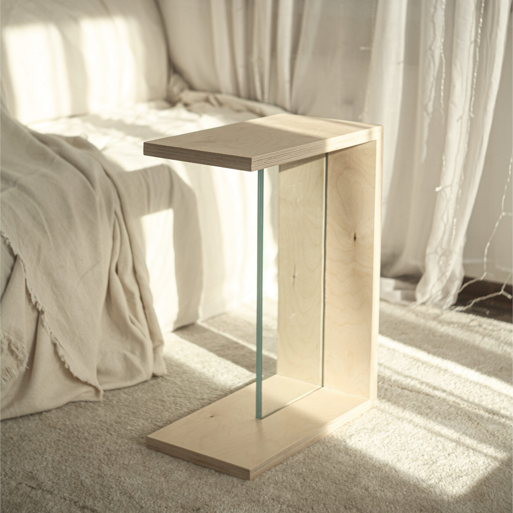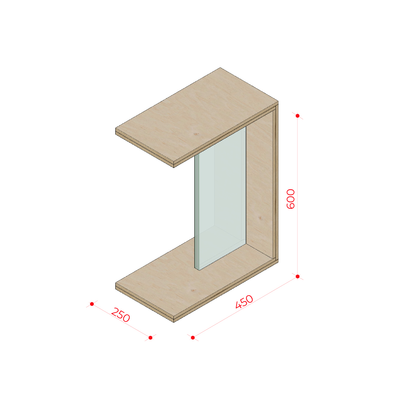 Конструкция сочетает в себе светлую березовую фанеру и стеклянный триплекс.