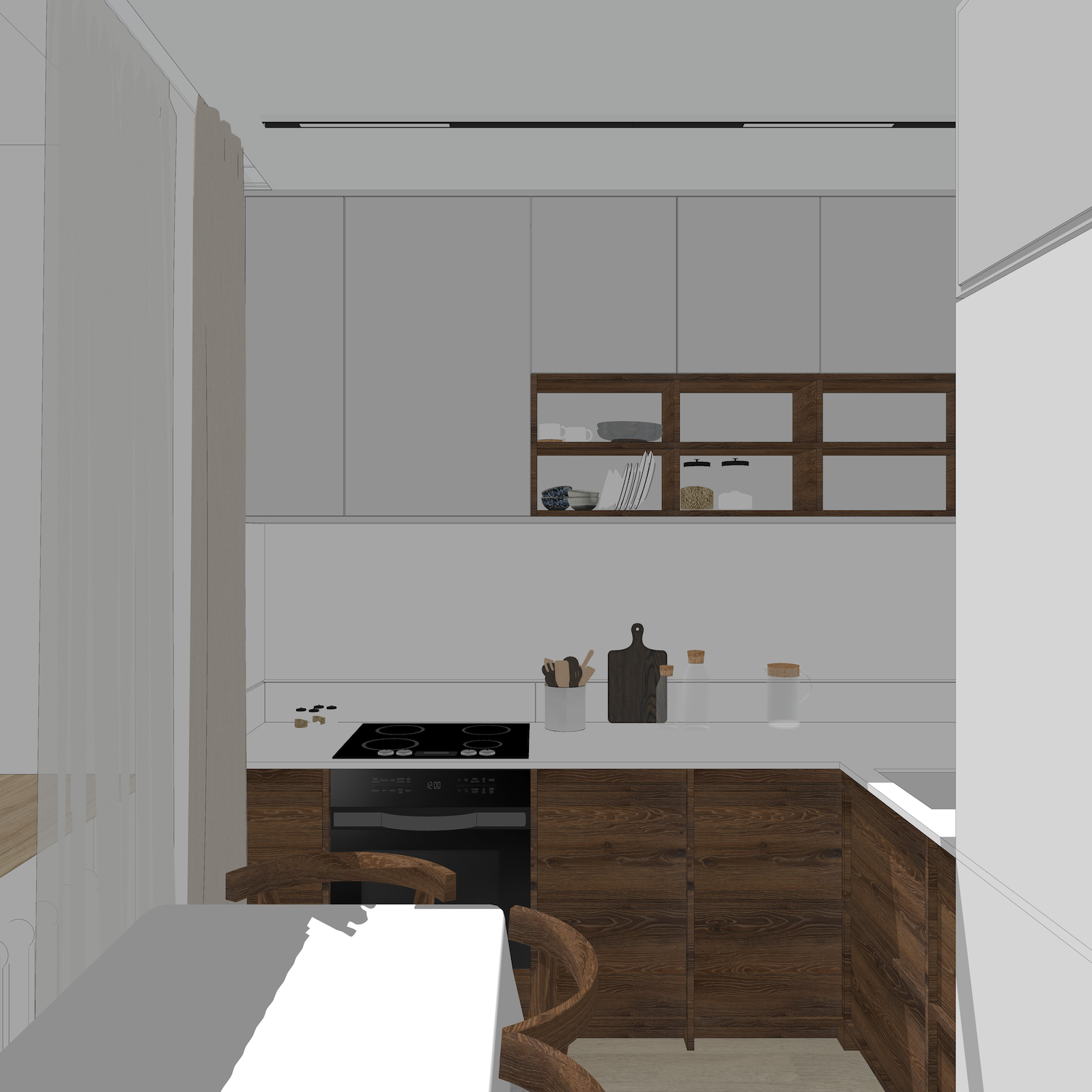 Лермонтова — это трехкомнатная квартира в панельном доме ленпроекта. Необходимо было создать просторный, строгий, светлый интерьер с нотками ностальгии, с натуральными материалами и оттенками.