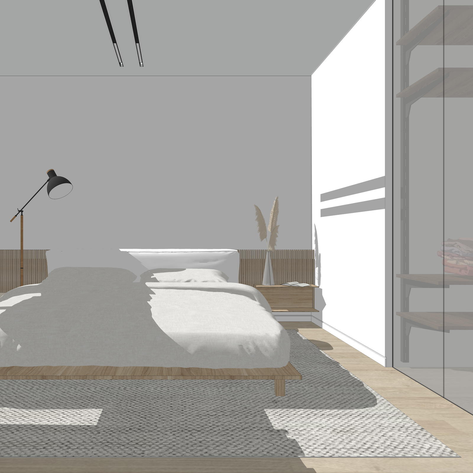 Стояла задача организовать пространство для семьи из трех человек (двое родителей и ребенок). В последующем комната ребенка станет гостевой.